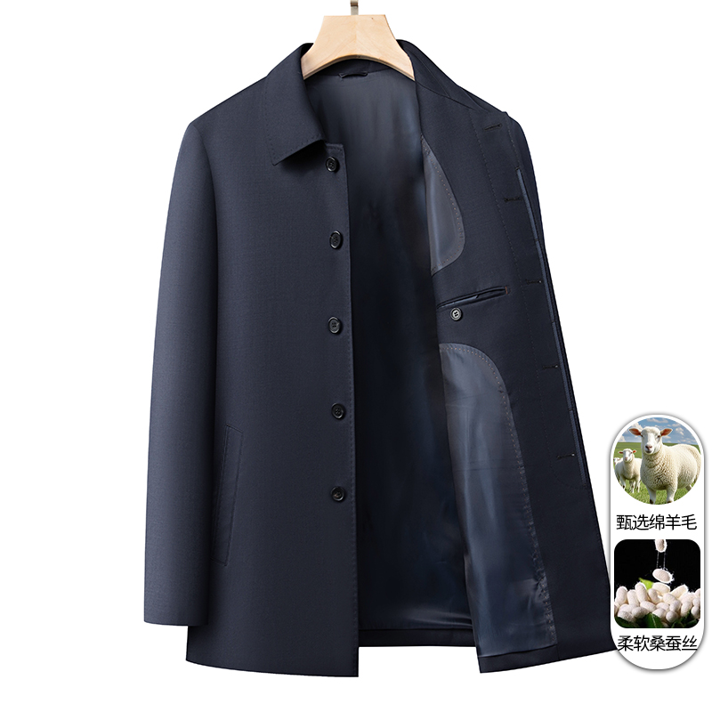 精纺羊毛80%绵羊毛翻领夹克桑蚕丝外套
